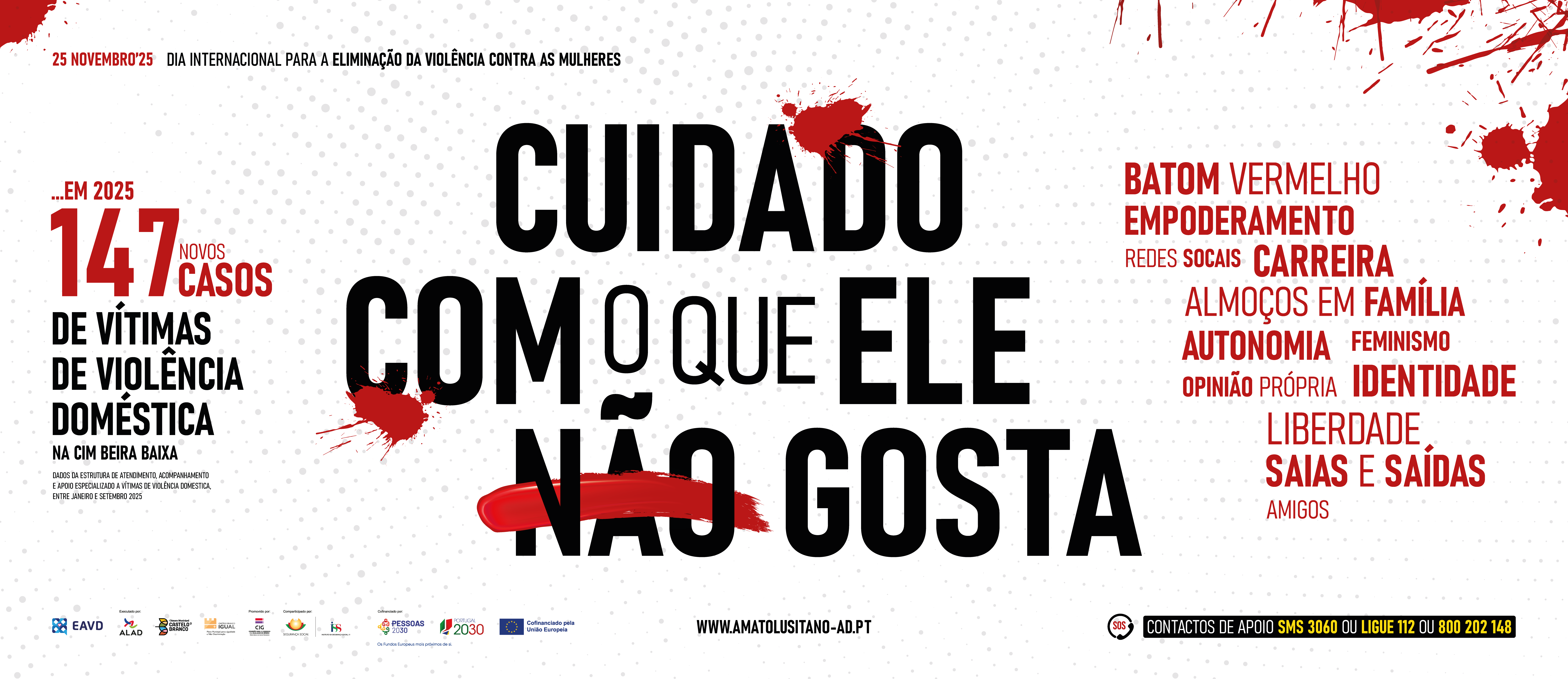 No âmbito do Dia Internacional para a Eliminação da Violência contra as Mulheres, assinalado a 25 de novembro, a ALAD | Amato Lusitano – Associação de Desenvolvimento, entidade gestora da EAVD | Estrutura de Atendimento, Acompanhamento e Apoio Especializado a Vítimas de Violência Doméstica, lança a campanha “Cuidado com o que ele não gosta”, em parceria com a Câmara Municipal de Castelo Branco e integrada na implementação do PMIND | Plano Municipal para a Igualdade e Não Discriminação.