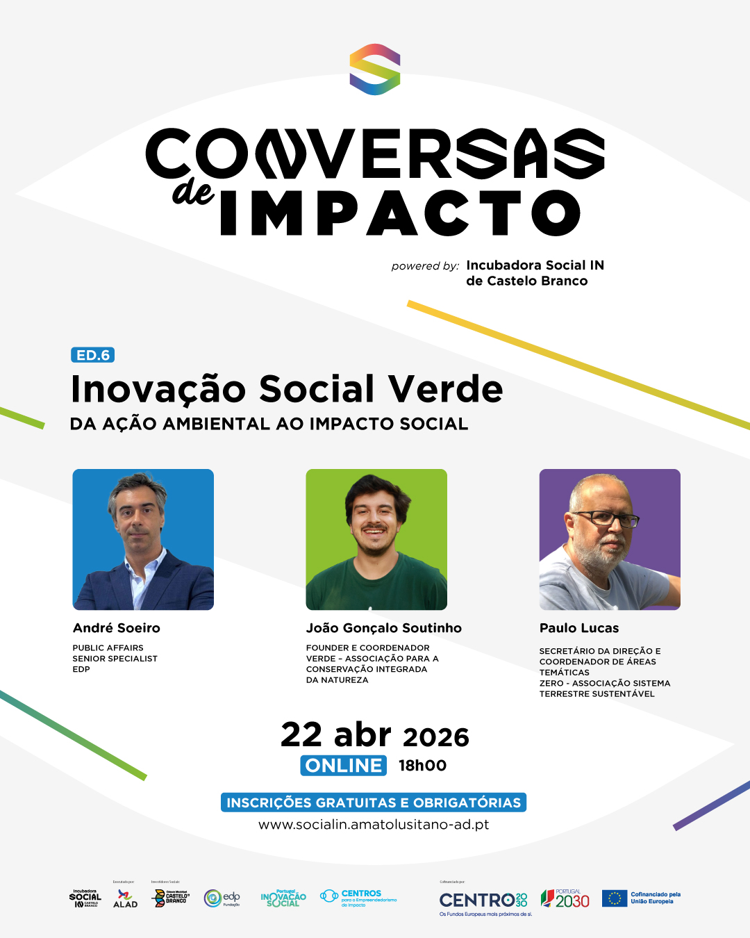 O ciclo de inspirational talks "Conversas de Impacto" que capacita e sensibiliza a comunidade para o empreendedorismo de inovação social, pretende estimular o espírito empreendedor através de histórias e experiências que fazem a diferença.